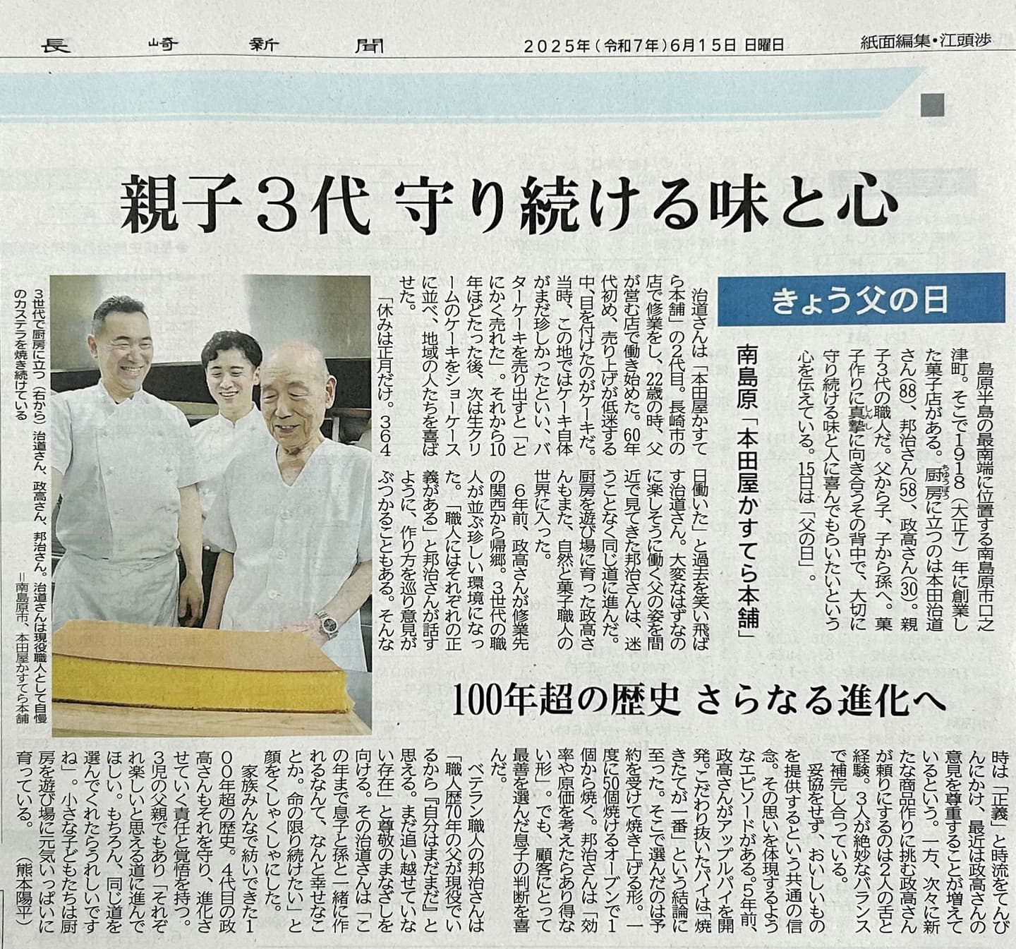 父の日の特集で、職人3人が取り上げられました